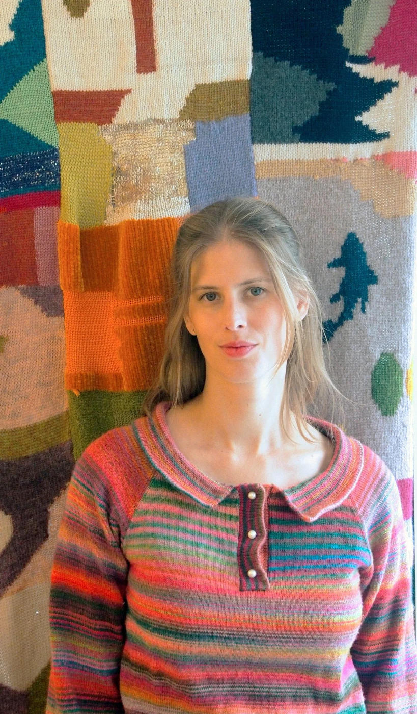 Arabella Miller hat an der Hochschule für Gestaltung und Kunst FHNW in Basel Modedesign studiert. Im Masterstudium am Royal College of Art in London landete sie «eher zufällig» im Strickdesign, blieb dabei und bildete sich an der Schweizerischen Textilfachschule STF auch noch zur Knitwear Spezialistin aus. 2019 gründete sie ihr eigenes Label, eröffnete mitten in Basel ihr Atelier und begann damit, analoge Strickmaschinen zu kaufen. Auch hier konnte sie auf eine lange Tradition zurückgreifen, da die Schweiz bis zur Digitalisierung eine Vorreiterrolle in dieser Technologie innehatte. Bis heute entstehen alle Designs und Prototypen im Atelier in Basel.