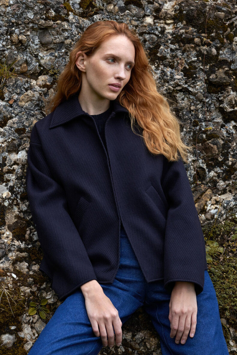 Kurze Wolljacke «Boxy Fall» in Nachtblau