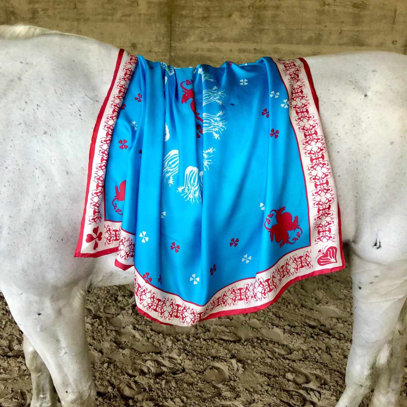 Seit 2007 ist Elisabeth Schwarzenbeck nun selbstständig und mit eigenem Atelier in Bern vor allem im Bereich Printmedien tätig. Aus zwei Dimensionen wurden bald drei: Seit 2014 arbeitet Schwarzenbeck mit Glas und Porzellan. Sie gestaltet Vasen als Kunstobjekte in limitierten Auflagen. Und nun also auch Seidentücher: Zum Textildesign kam die Grafikerin über die Kunst des Scherenschnitts. Seit ein paar Jahren fertigt sie täglich kleine, feine Motive aus Papier und dokumentiert diese fotografisch. Bald wurde klar, dass diese schönen Motive auch Bausteine für grössere Gestaltungen sein könnten. Es ist ein Glücksfall, dass sich Elisabeth Schwarzenbeck dazu entschieden hat, ihre Scherenschnitt-Motive auf feinste Seide zu drucken. Zusammen mit den leuchtenden Farben, Verläufen und grafischen Mustern ergeben sich Designs, die nicht nur überaus schön, sondern auch unverwechselbar sind. Einen guten Einblick in Elisabeth Schwarzenbecks Schaffen gibt es auch auf ihrem Instagram-Kanal.